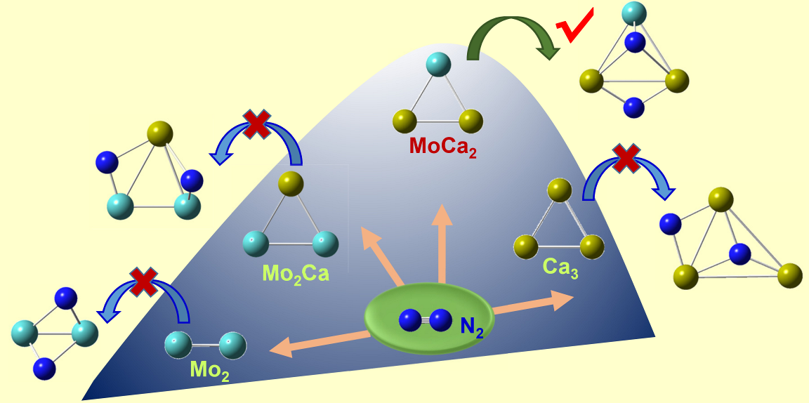 论文题目:Exploring trimetallic clusters containing alkali and alkaline earth metal atoms with high activity for nitrogen activation